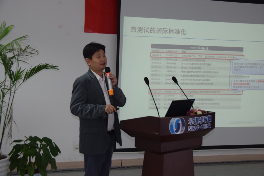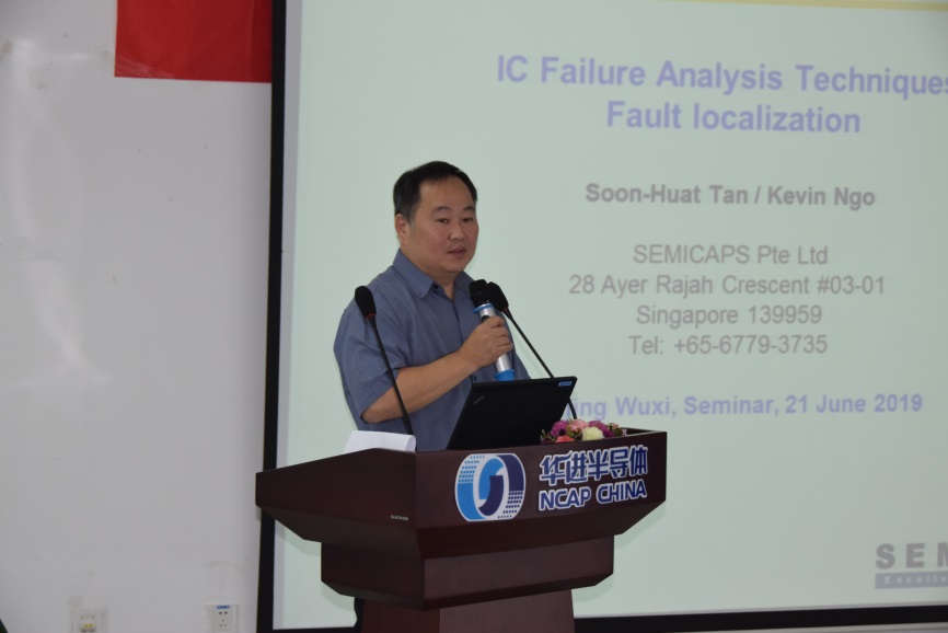 21日上午,华进市场及战略部部长周鸣昊致辞欢迎各位来宾并介绍华进FA及可靠性实验室能力。王珺教授博士作为第一位演讲嘉宾,首先介绍封装芯片微结构失效破坏领域的研究新进展,针对LK/ULK薄膜材料参数的测试方法、芯片封装结构整体/子模型分析方法、芯片LK/ULK层应力分析、断裂分析、参数化分析研究方法、通过凸点剪切实验快速评估芯片微结构可靠性等研究内容进行讨论,为先进芯片封装可靠性设计提供参考。随后,SEMICAPS公司Soon-Huat Tan分享了IC失效定位技术。上午茶歇期间,华进半导体组织部分观众参观FA及可靠性实验室。