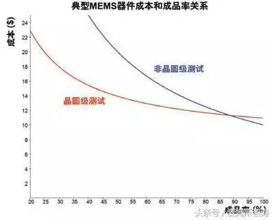 正如引言所说,一般MEMS产品的成品率比IC产品要低很多,成本分析发现60%~80%的制造成本来自于封装阶段,图1中当成品率为50%时,采用晶圆级测试的芯片能节省30%总成本,可见采用晶圆级测试技术,可以极大降低MEMS量产成本,提高器件可靠性。