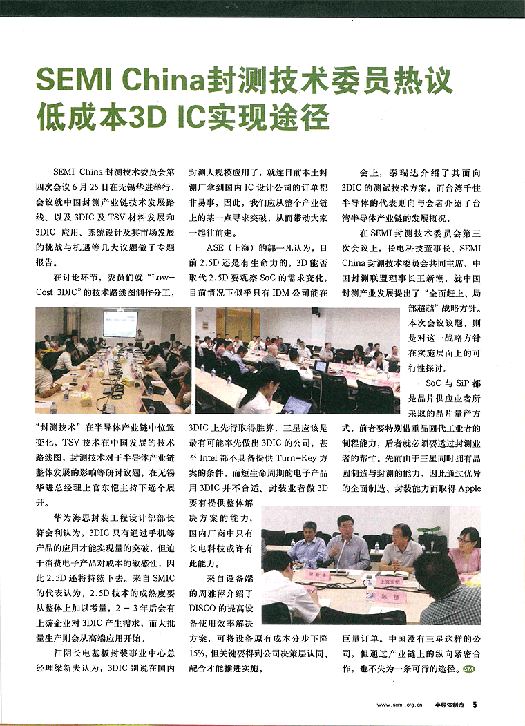 SEMI China封测技术委员热议低成本3D IC实现途径