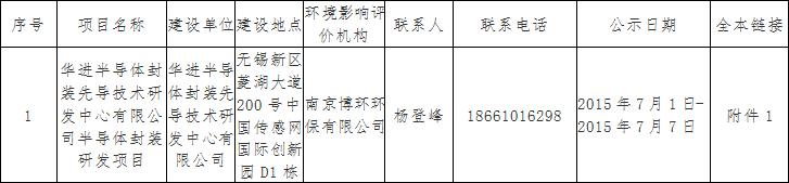 华进半导体封装先导技术研发中心有限公司半导体封装研发项目环境影响评价报告表全本公示