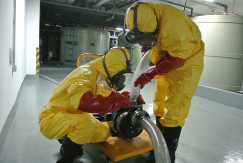 8月26日公司进行了酸碱废液应急处置演练活动