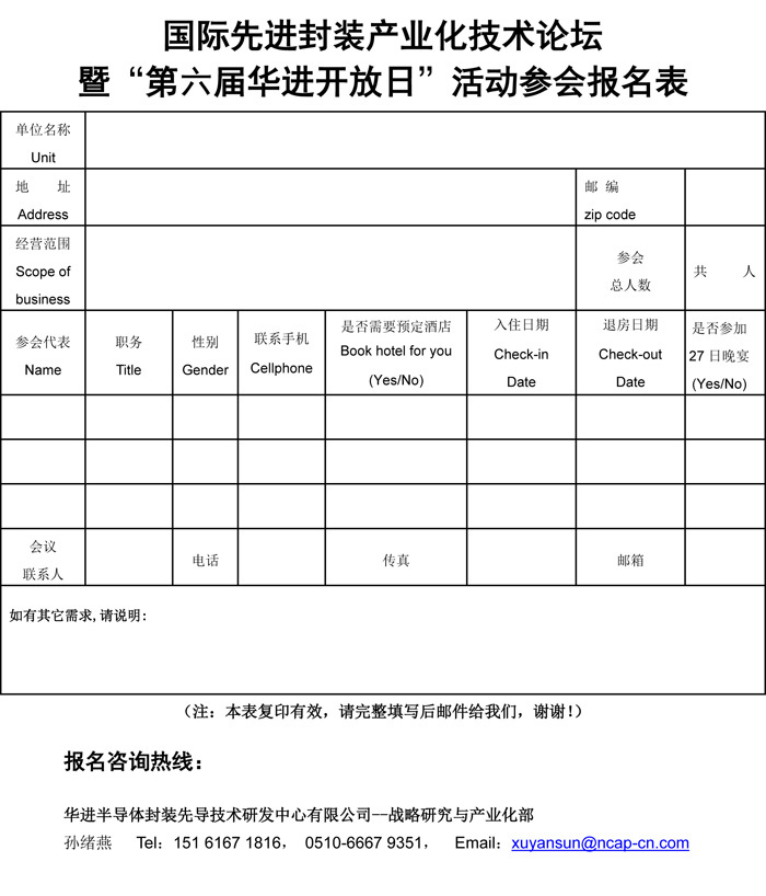 华进联系人:孙绪燕 0510-6667 9351、151 6167 1816、xuyansun@ncap-cn.com
