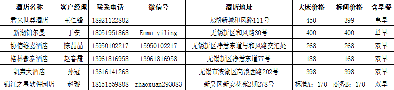 华进住宿协议价:(预定时需报华进公司名字享受协议价格,住宿费用需自理)