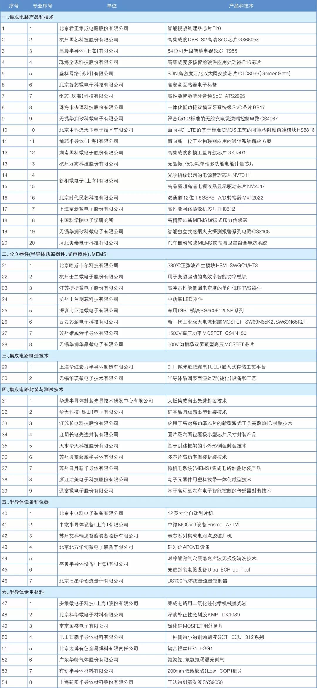 由中国半导体行业协会、中国电子材料行业协会、中国电子专用设备工业协会和中国电子报社共同举办的“第十二届(2017年度)中国半导体创新产品和技术”项目评选活动,经过评选委员会按照评审条件和程序进行严格的综合评价,评选出54项创新产品和技术。