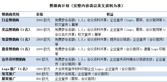 会议注册平台将于3月底开放,敬请期待!此外,本次活动的赞助商计划已上线,如您希望借此平台进行企业推广,欢迎咨询。