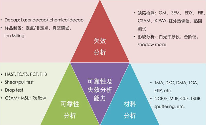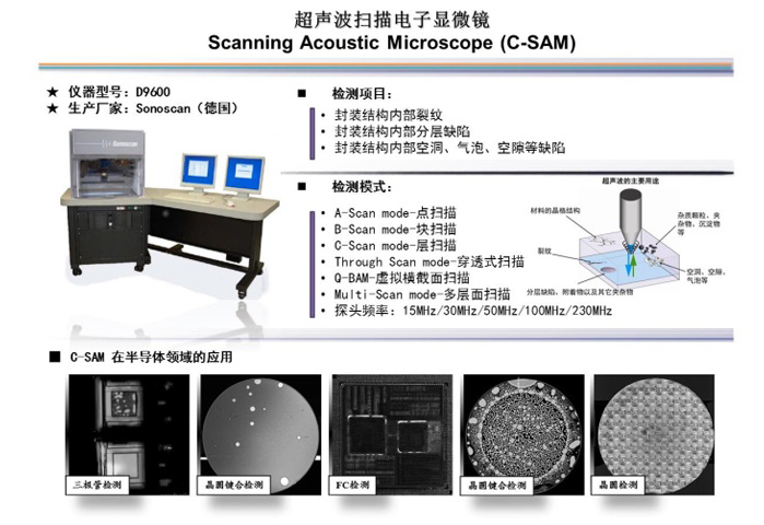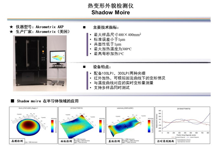 随着芯片集成度提高,工艺尺寸缩小,想要找到失效器件实属大海捞针;因此,失效分析和可靠性测试扮演着越来越重要的角色。检测中心依托华进工艺线及丰富的封装经验,配备先进的检测设备及专业的检测团队,具有强大的资源整合能力,掌握业内领先的失效分析和研发能力,为业界提供可靠、高效、精准的失效分析及可靠性测试服务,包括但不限于无损检测(C-SAM、XRF、FTIR、Shadow Moire等)、有损检测(cross-section、FIB、SEM+EDX等)、材料特征分析测试(粘度、Tg、固化度、CTE热膨胀系数、机械强度等)等。截至2018年,检测中心服务150余家客户,服务案例2500余件。
