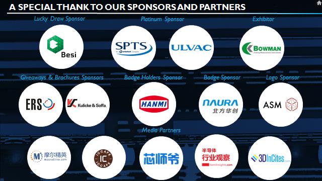 2019年4月22日-4月23日,第五届先进封装及系统集成研讨会在上海证大美爵酒店成功举办。本次研讨会由华进和Yole共同主办,由BESI、SPTS、ULVAC、HANMI、NAURA、ERS、Kulicke & Soffa、ASM、Bowman倾情赞助,摩尔精英、半导体行业观察、芯师爷、IC咖啡和3DInCites联合宣传。