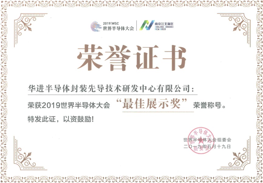 华进半导体荣获2019世界半导体大会“最佳展示奖”和“十大最具人气品质展商”