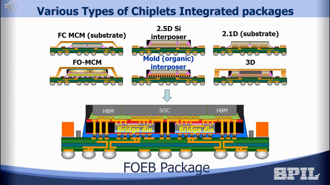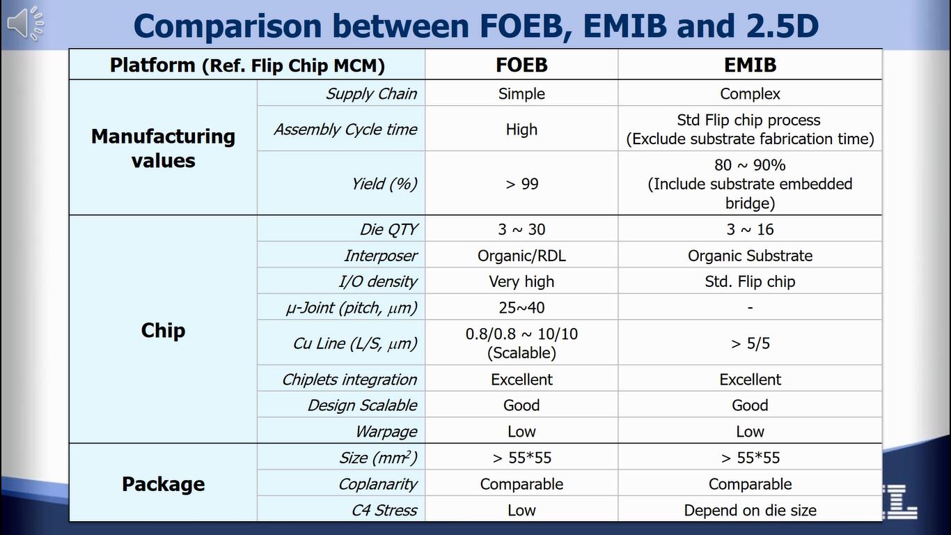 矽品高级总监C. Key Chung博士介绍了一种可扩展的小芯片(chiplet)封装技术,即扇出嵌入式桥(FOEB)。该解决方案具有低成本、延展性佳、传输损耗低、设计灵活、热翘曲低等优势。