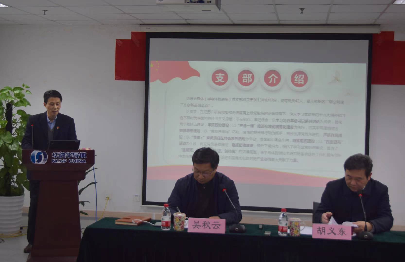 会议由江苏省产业技术研究院党委委员吴秋云主持,华进半导体董事长于燮康致欢迎辞,华进(封装所)党支部全体党员及研发骨干代表参加了活动,并听取专题报告。